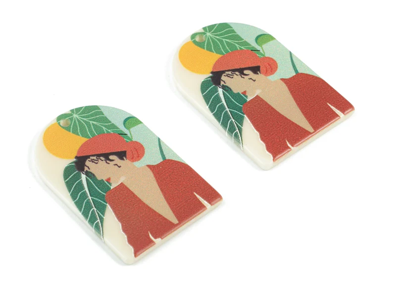 Acrylic Domed Earring Charms – Woman Oval Pastel Earrings