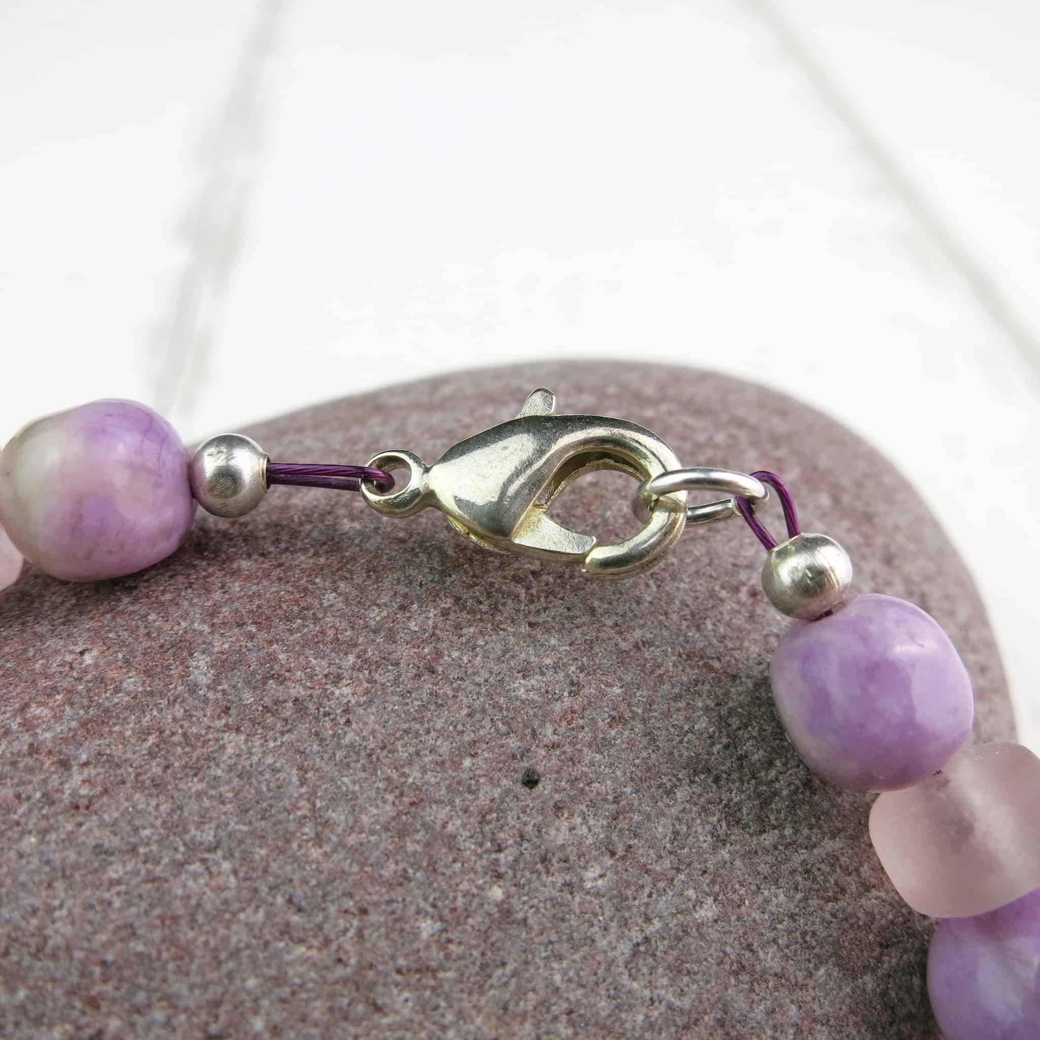 Beaded bracelet in a mix of lilac Jasper gemstone and frosted glass beads.