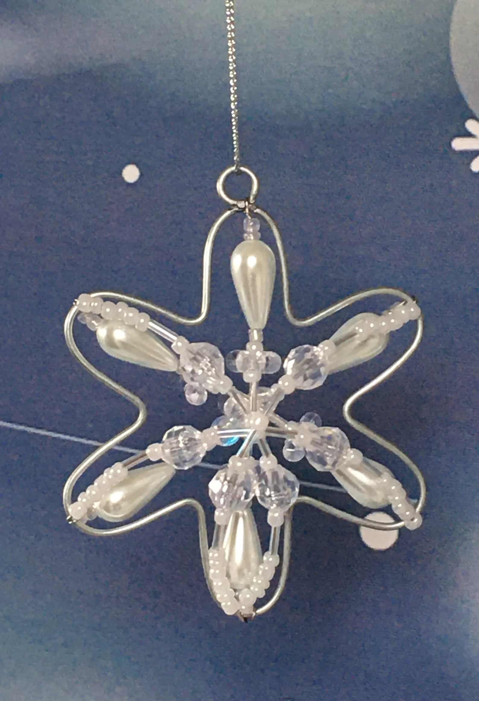 Beaded Snowflake ornament. Made with love by Sarah Michelle in Cornwall. Perfect to hang on the Christmas tree, in the window, in the car or a gift for someone special. a must for Christmas ornament collectors and a Christmas heirloom to treasure and hand down to future generations. Light and easy to post.