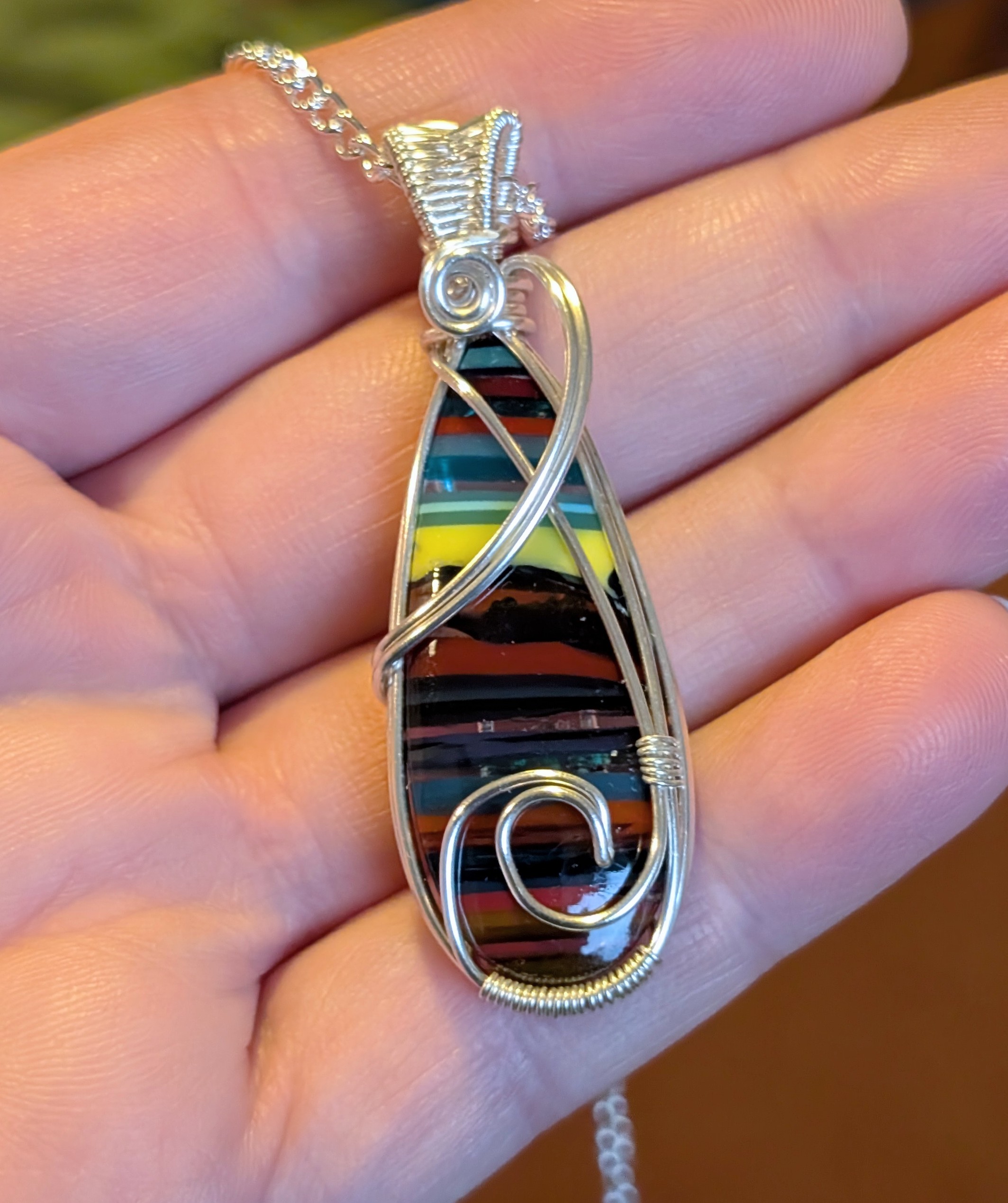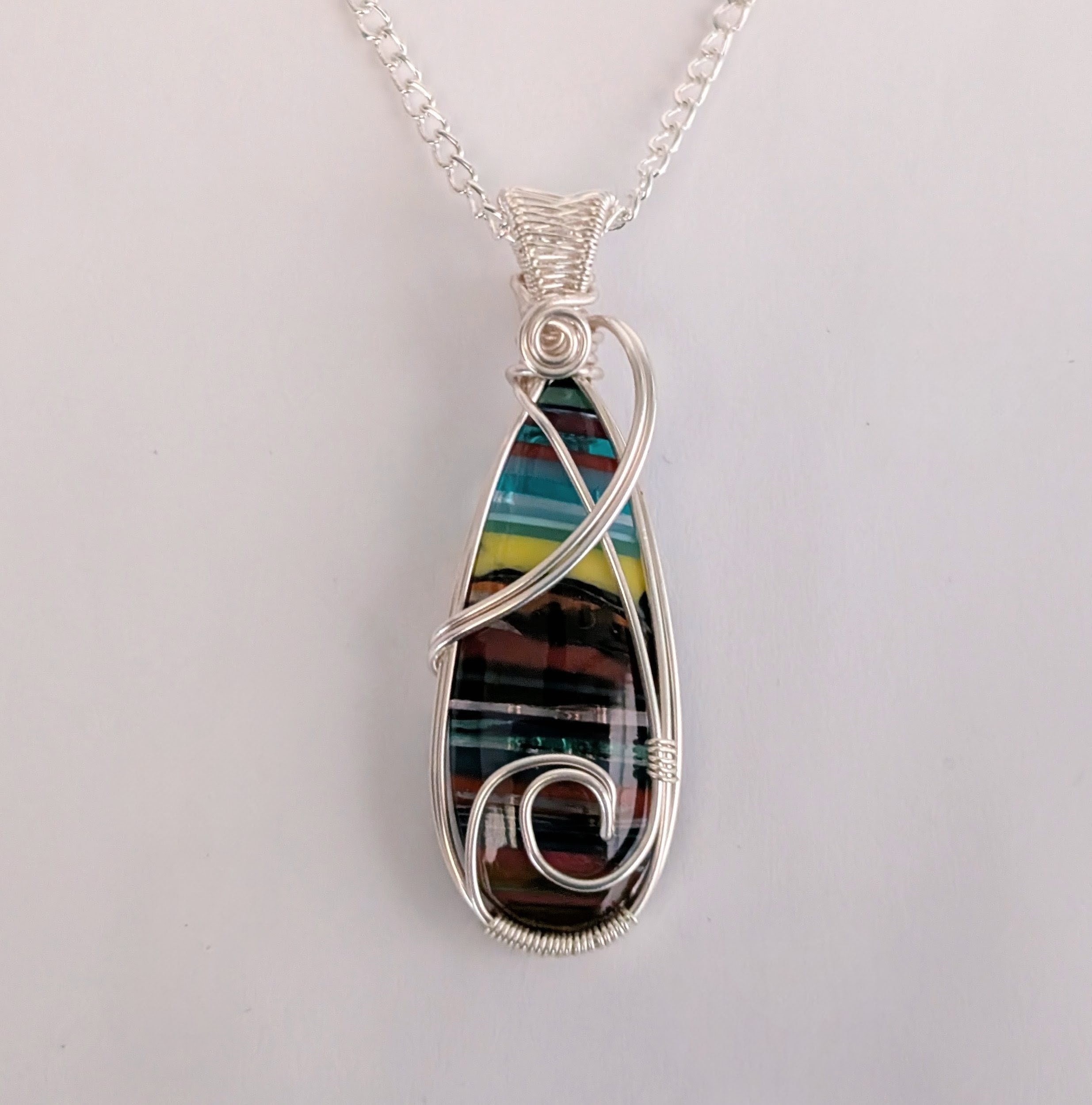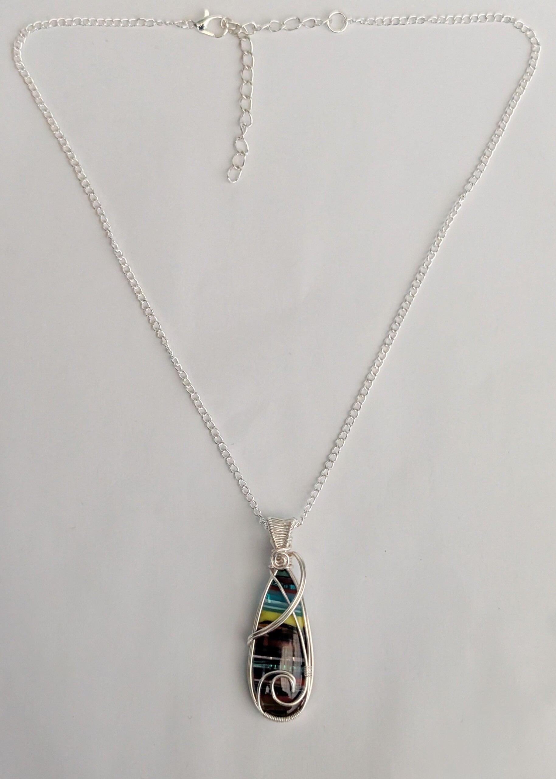 Colourful striped surfite pendant with silver plated copper wire.