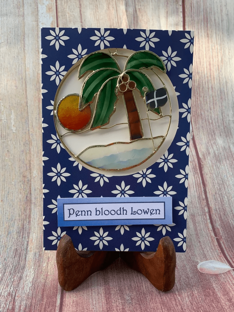Cornish Birthday Card, Penn bloodh Lowen, Palm Tree Ornament Card