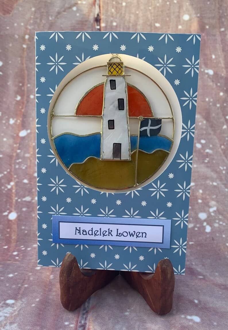 Cornish Christmas Ornament Card Lighthouse in Cornish.