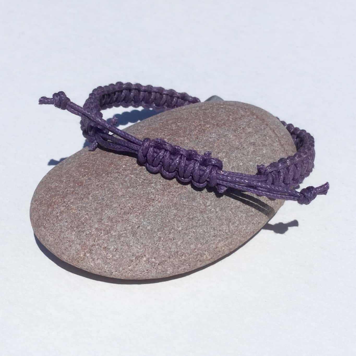 Cotton Macrame Friendship Bracelet – Purple with a Metal Limpet Bead