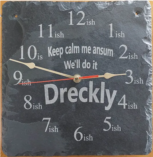 SKU: N/A Category: Home & Living Tags: Cornish clock, Cornish Gift, Cornwall clock, Dreckly Clock, Slate Clock