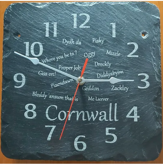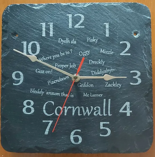 Slate Clock – Phrases Cornwall Etched in Cornwall Cornish Clock – Ticking