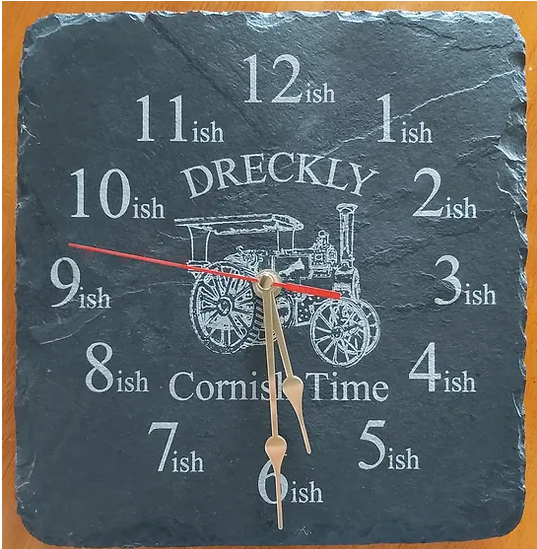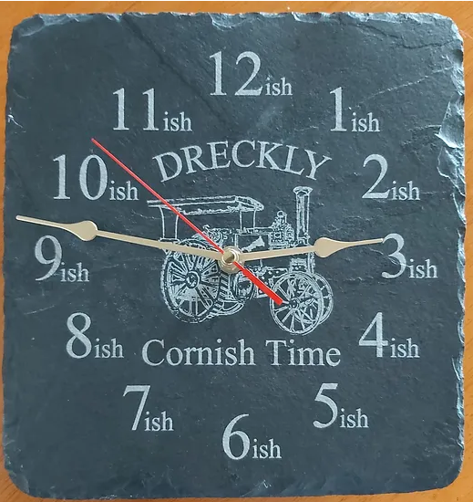 SKU: N/A Category: Home & Living Tags: Cornish clock, Cornish Gift, Cornwall clock, Dreckly Clock, Slate Clock