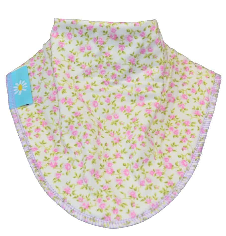 Stretch absorbent cotton jersey outer with a cowl neck to catch all those dribbles.
