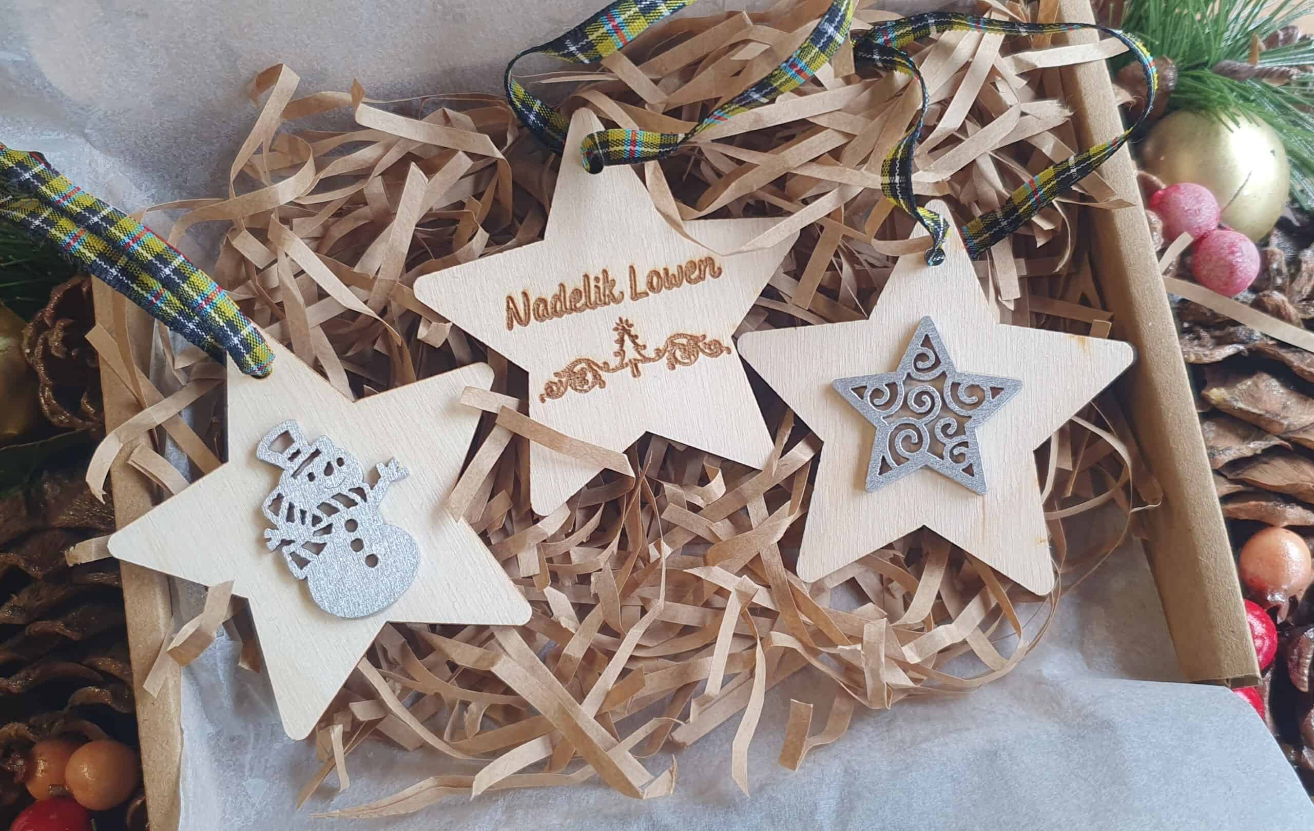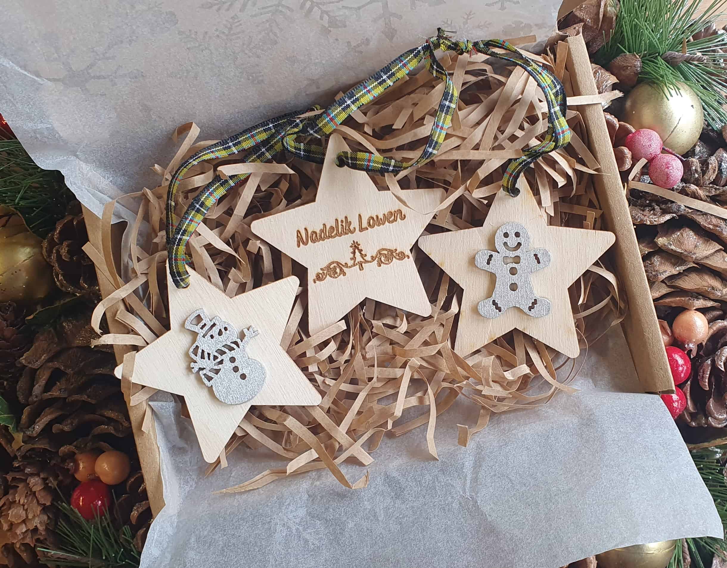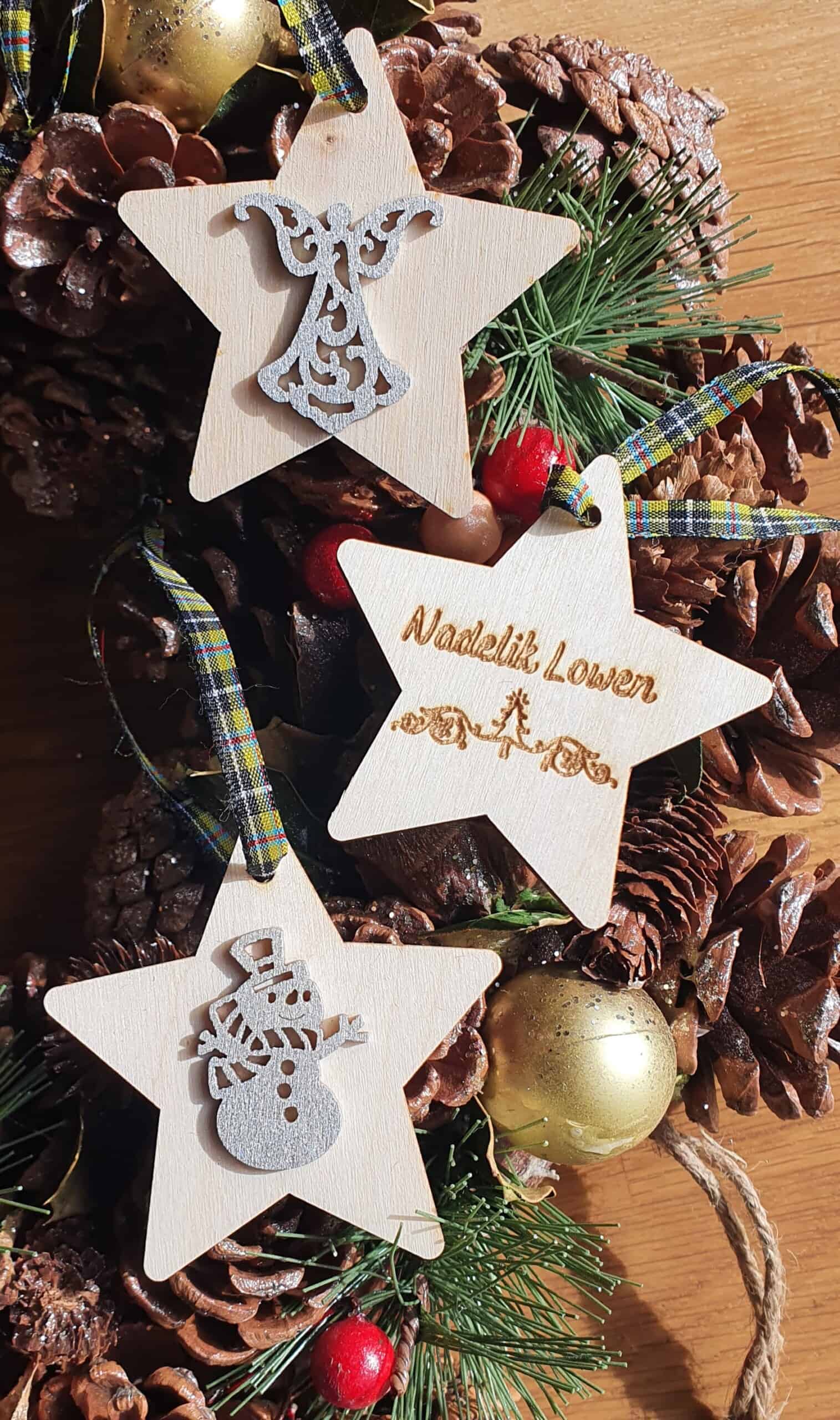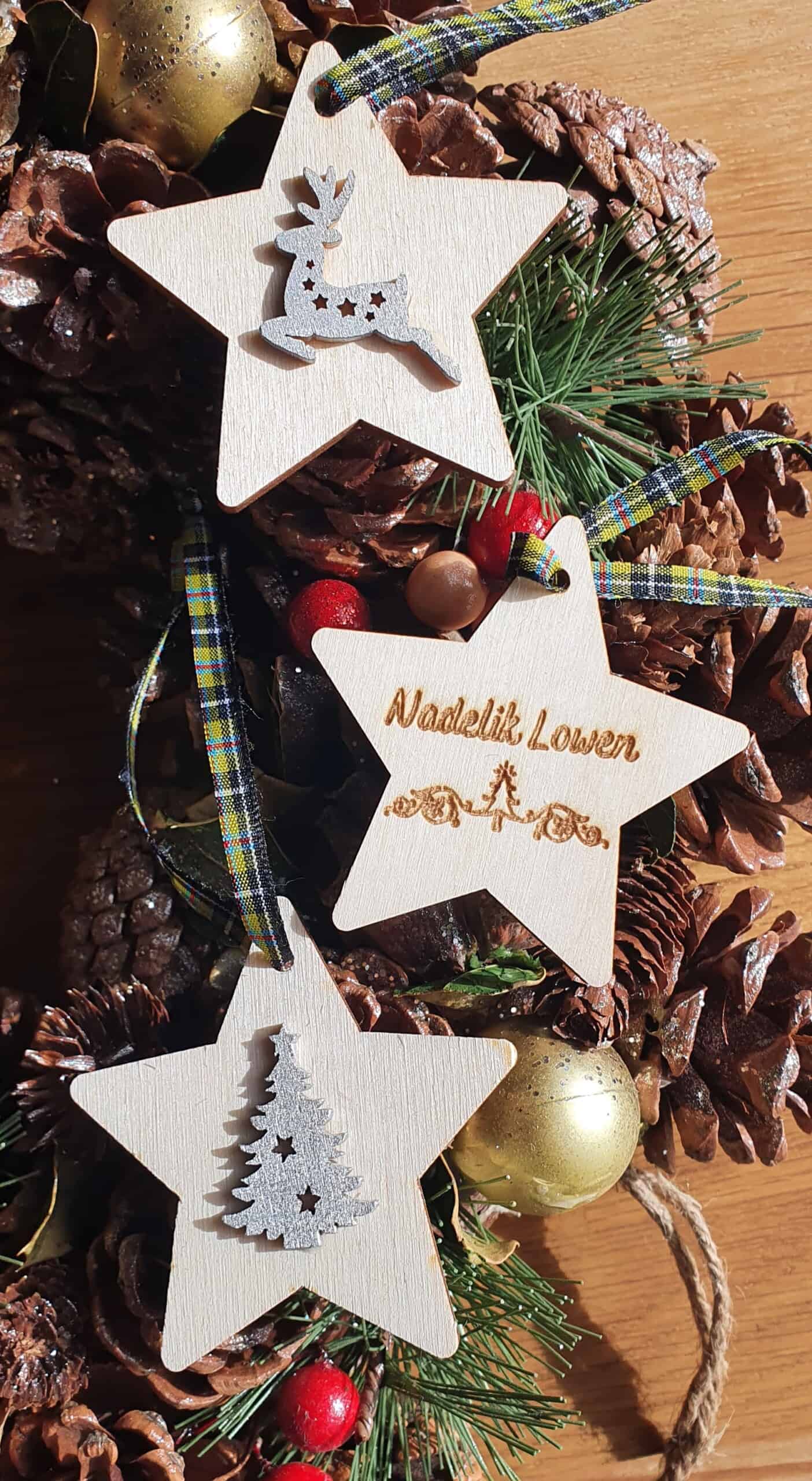 Each one has ‘Nadelik Lowen’ ( which means ‘Merry Christmas’ in Cornish) laser engraved on one one side. A cute silver Christmas themed decal on the other. And to attach to your Christmas tree a lovely Cornish Tartan Ribbon 🖤💛