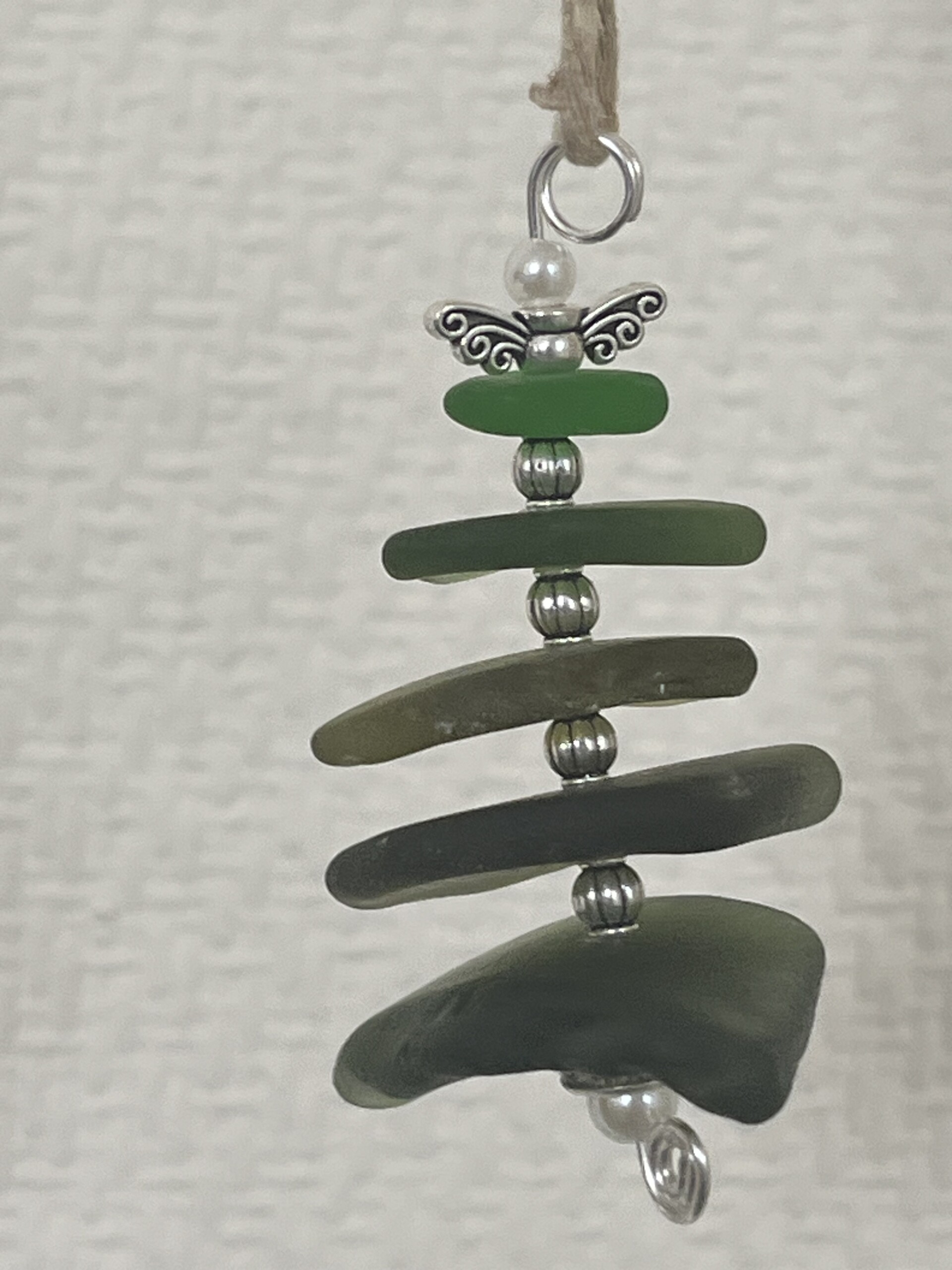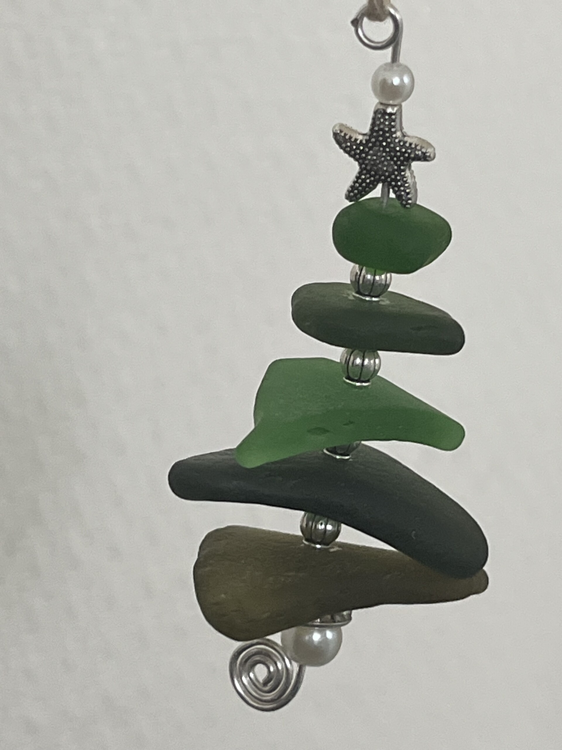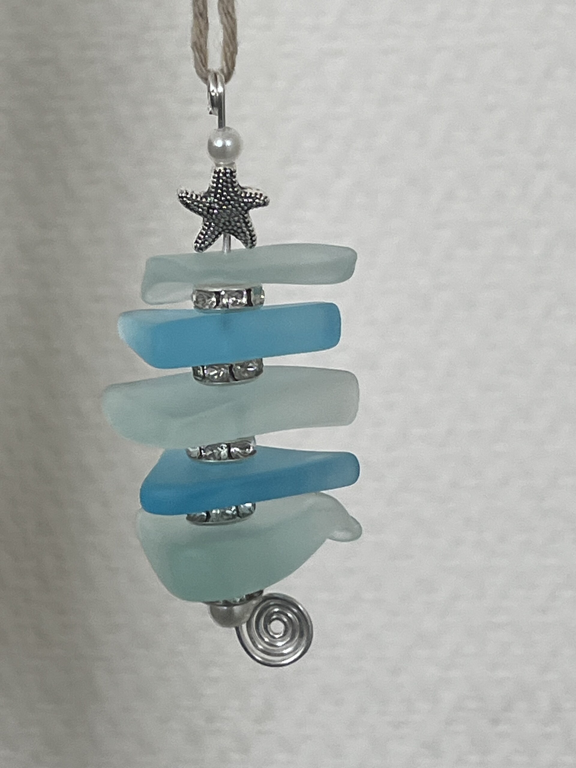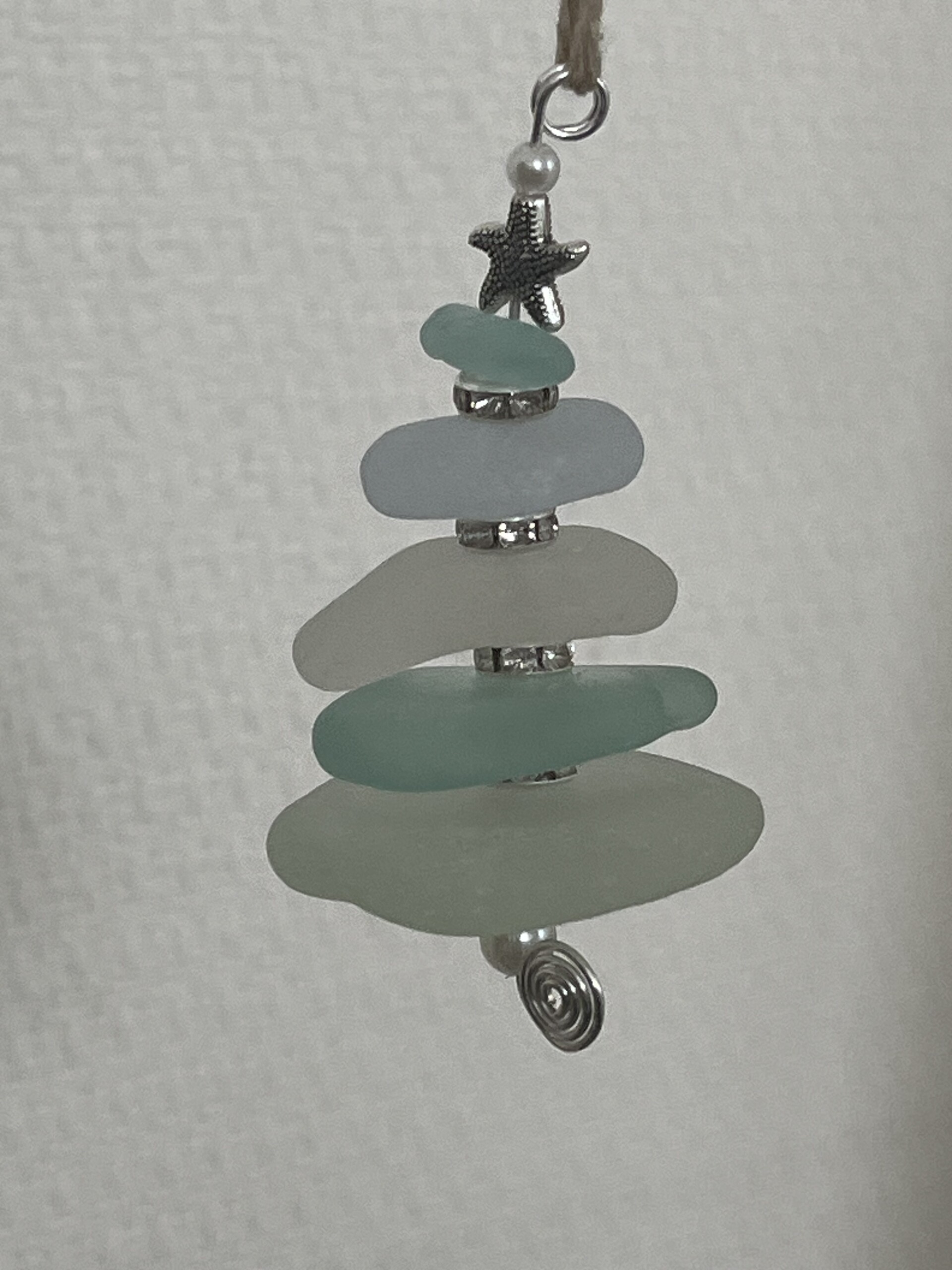 Seaglass Christmas tree ornament. Hand crafted with care.