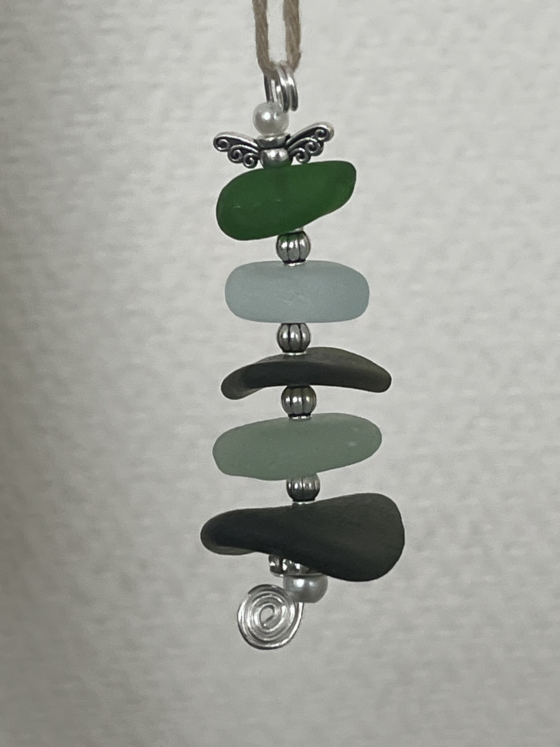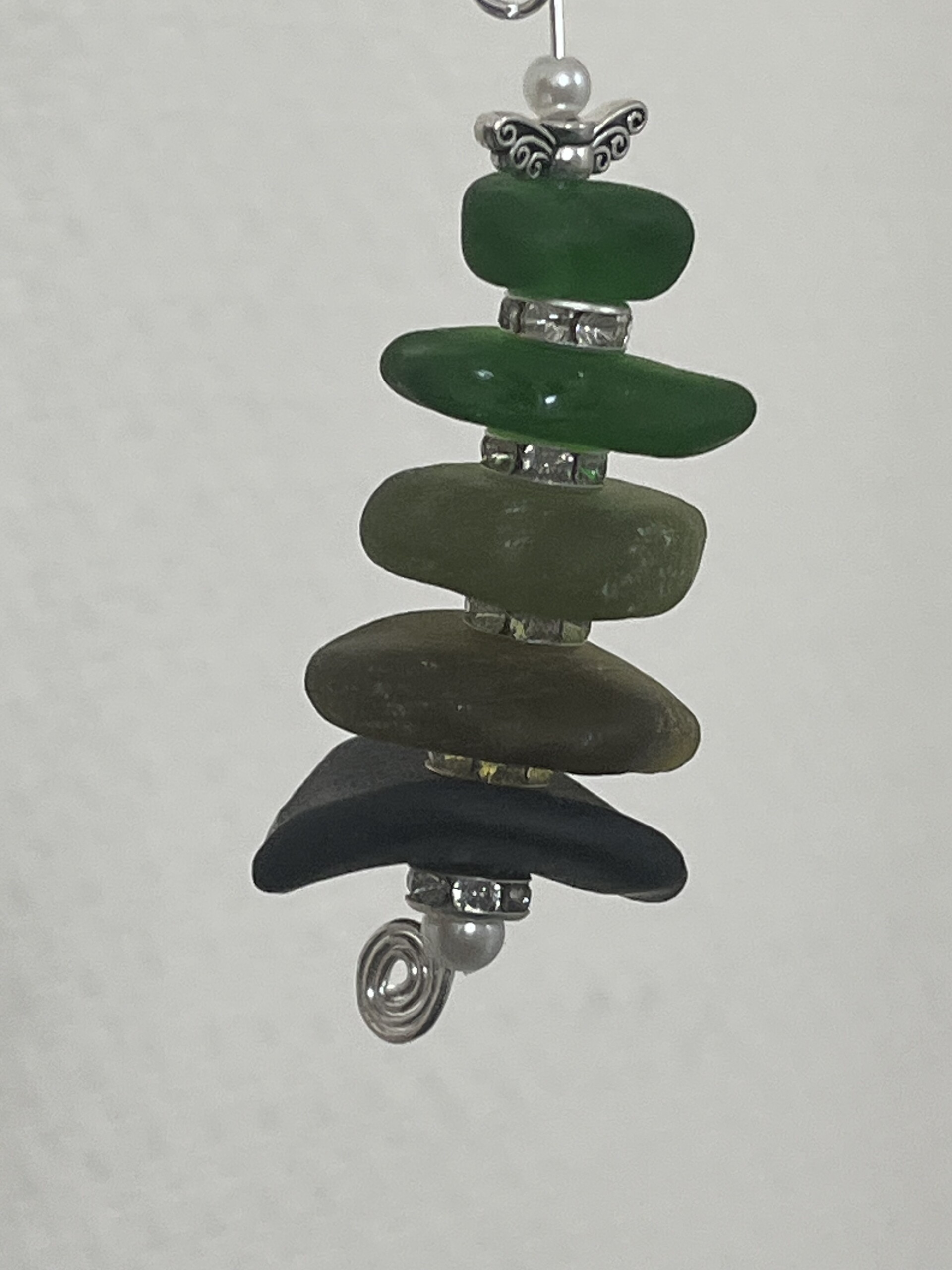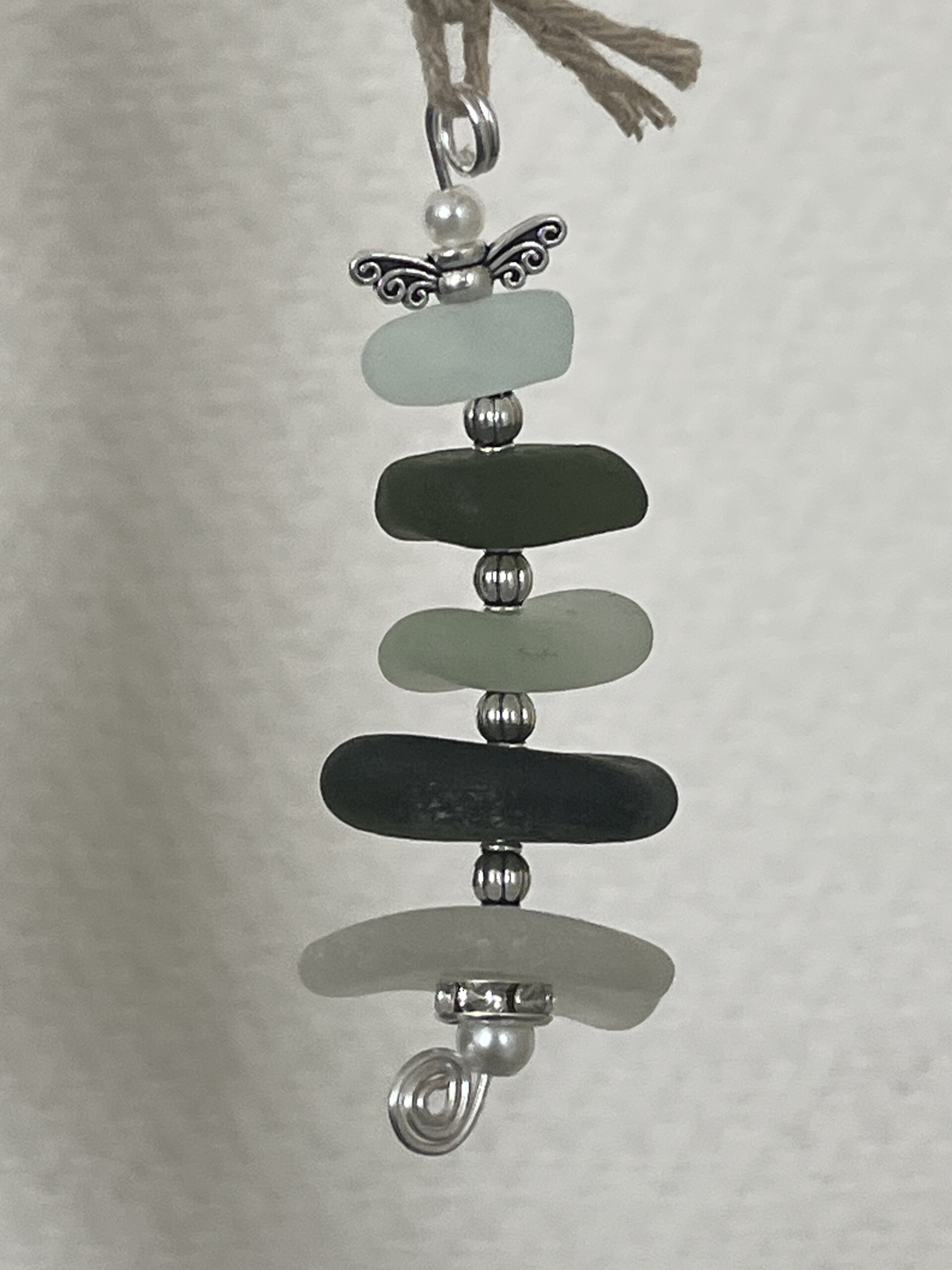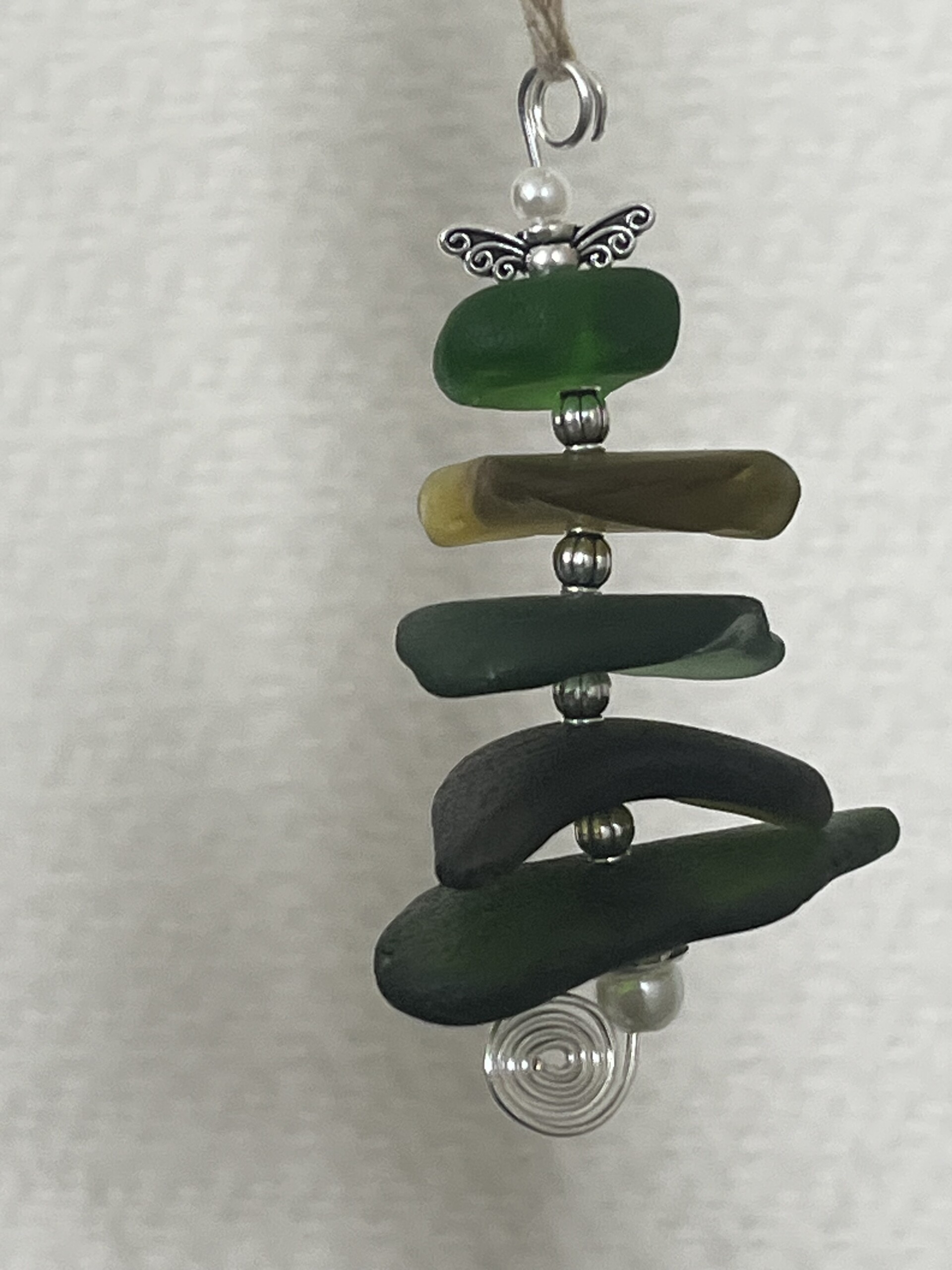 Seaglass Christmas tree ornament. Hand crafted with care.