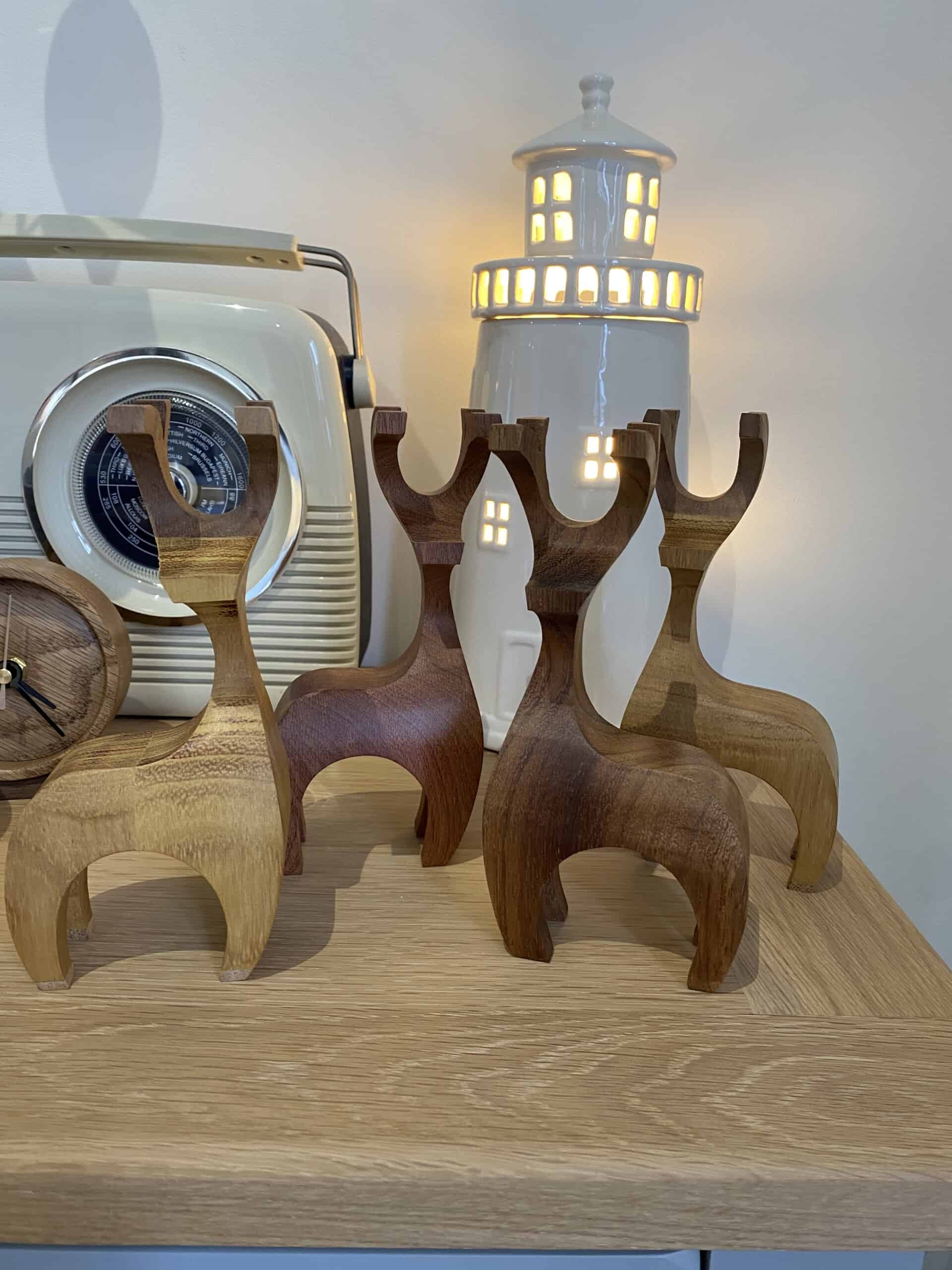 Beautiful handmade reindeer stag decorations. Made out of various woods including pine, mahogany and walnut, mainly reclaimed off cuts. I try and be as sustainable as I can.
