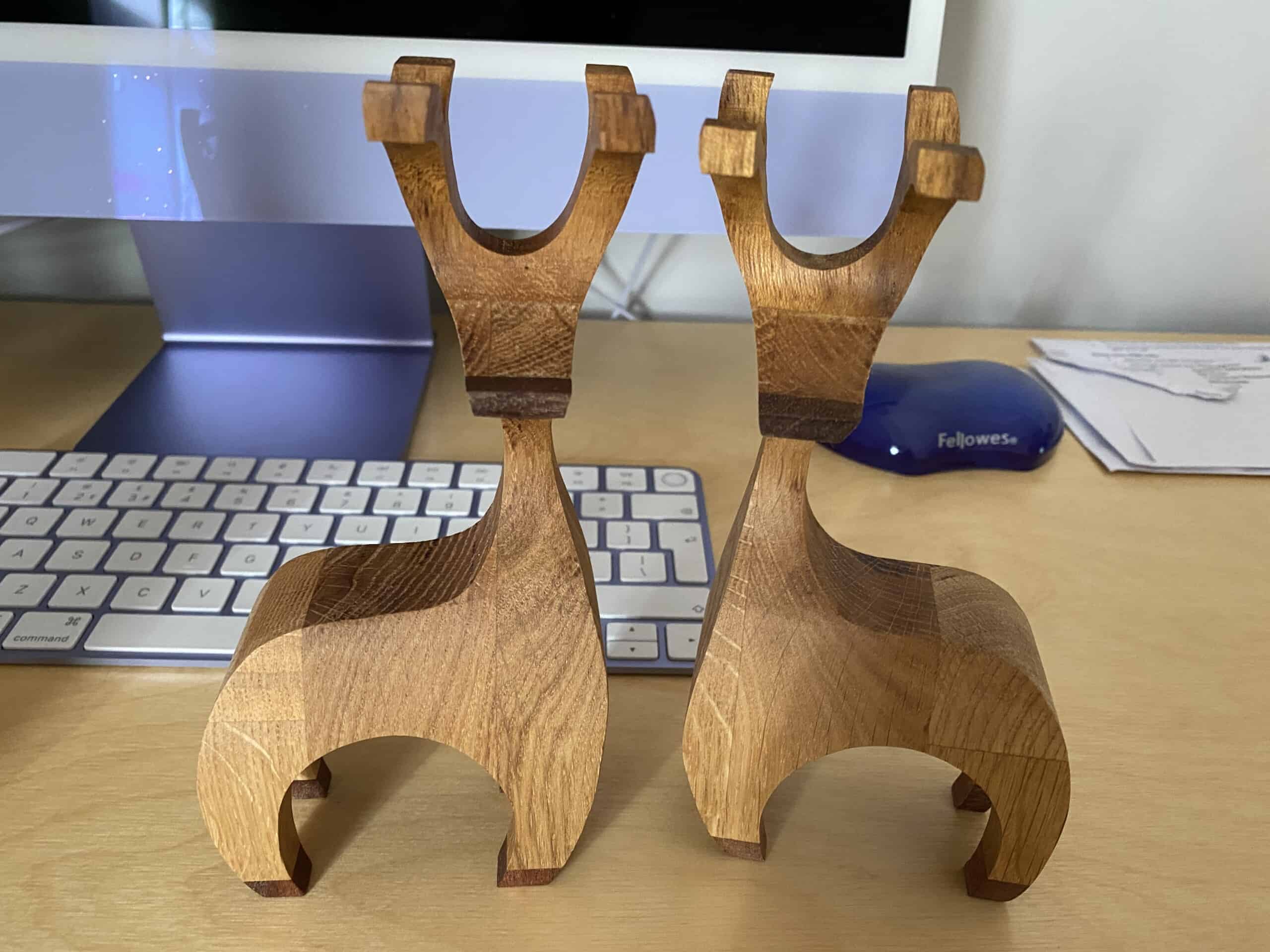 Each reindeer are made to order and come in random wood selection I.e. some have dark antlers and noses other light wood. If ordering a pair you can request to be made as opposite pairs or same facing.